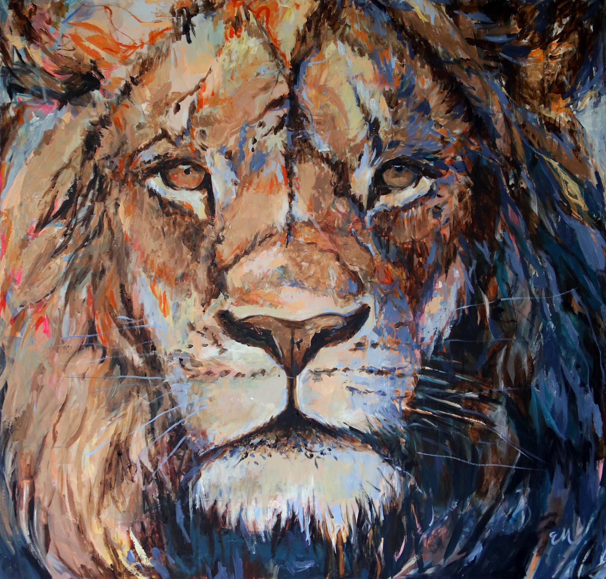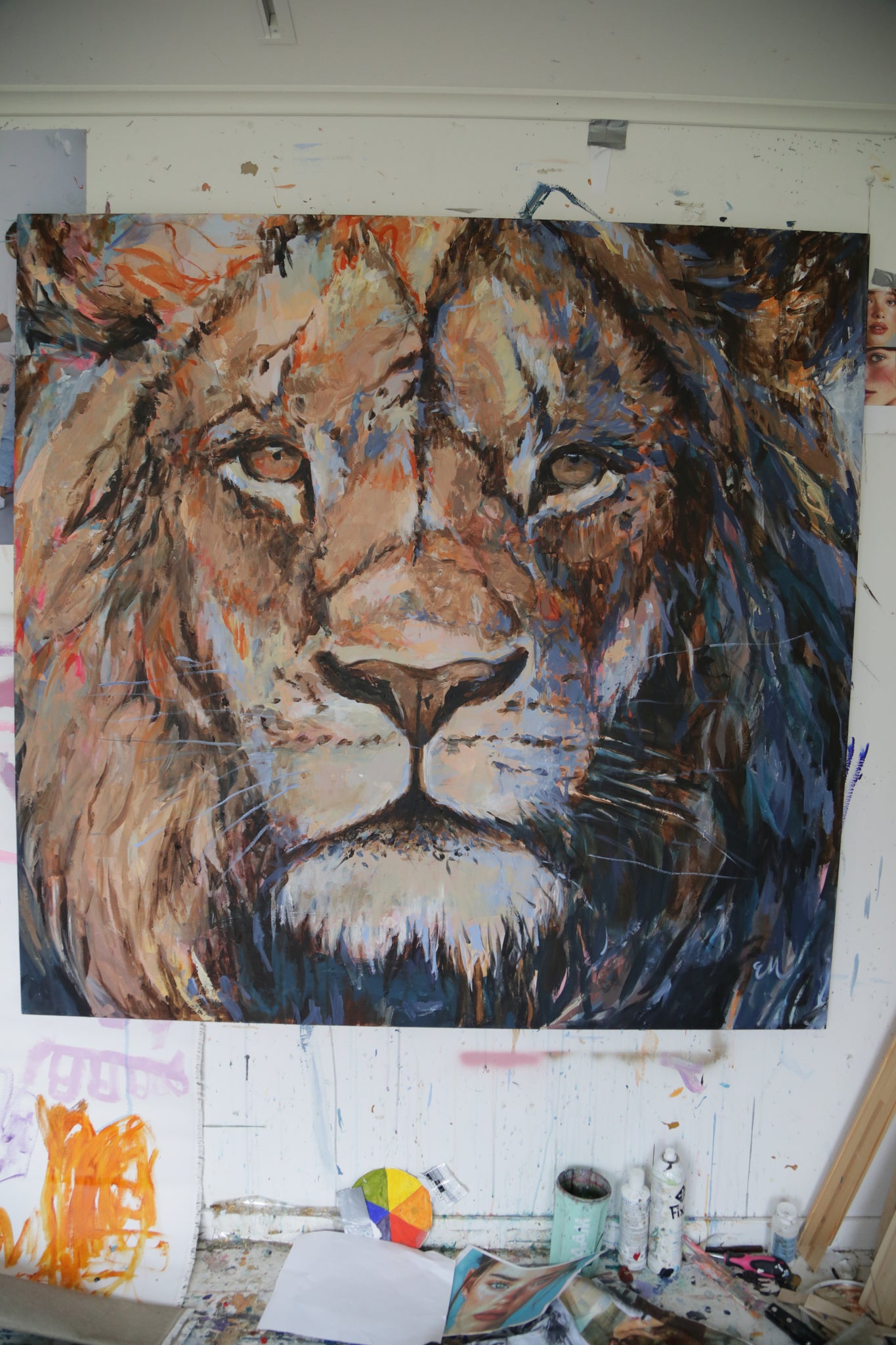 The style is impressionistic and modern, focusing more on movement, texture, and feeling than on strict realism. Every stroke contributes to a sense of energy and life, making the artwork both eye-catching and deeply evocative. This piece is perfect for you that looking for a statement artwork that symbolizes courage, leadership, and natural beauty.